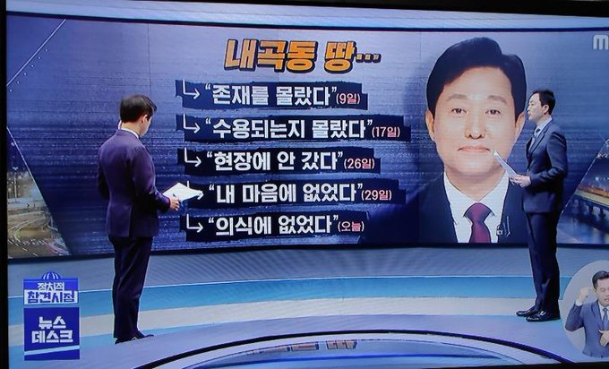 2010년 오세훈의 처가가 소유하고 있던 내곡동 땅 개발로 36억 받아갔다는 사실이 드러나자, 오세훈은 그 개발계획은 참여정부 때 확정된 거라고 해명했는데, 알고보니 오세훈이 직접 이명박 국토부에 개발해달라고 요청해서 개발계획이 확정된 걸로 밝혀졌다. 그러자 오세훈은 처가에서 알아서 한