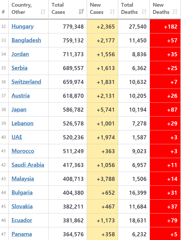 England Daily Coronavirus (COVID-19) 보고서 · 4 월 30 일 금요일. 2,046 건의 신규 사례 (양성)가 보고되어 총 3,858,882 건이 발생했다. 14 명의 새로운 사망자가보고되어 총 112,163 명이 사망