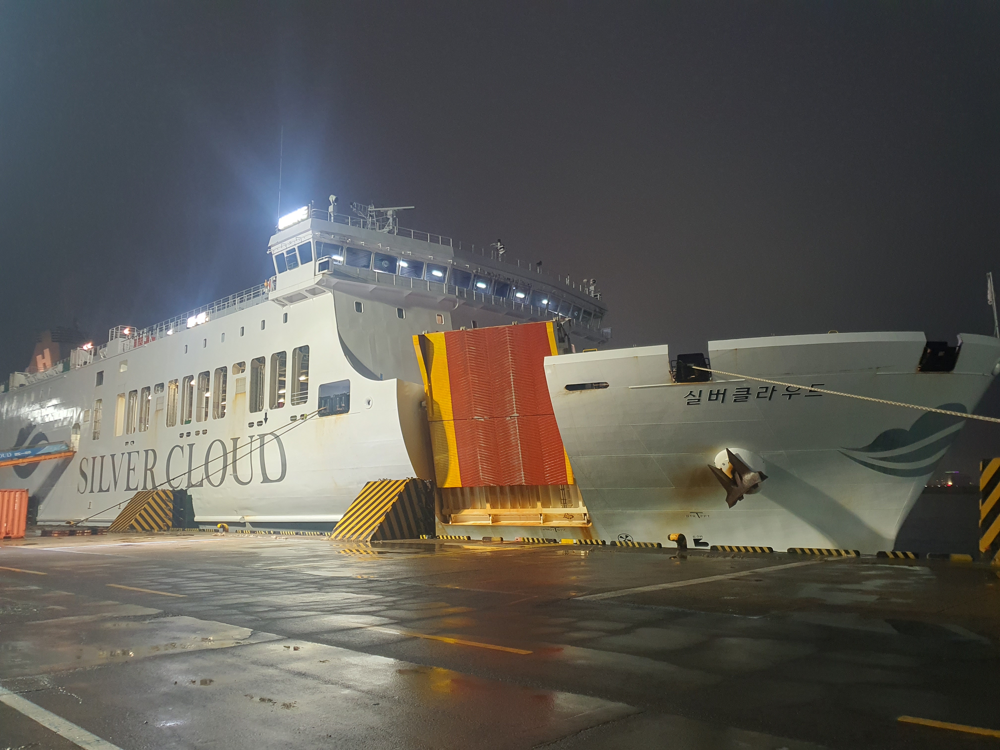 제주항에 도착한 실버클라우드, 저녁 6시경 3시간 항해 끝에 제주항에 입항합니다.