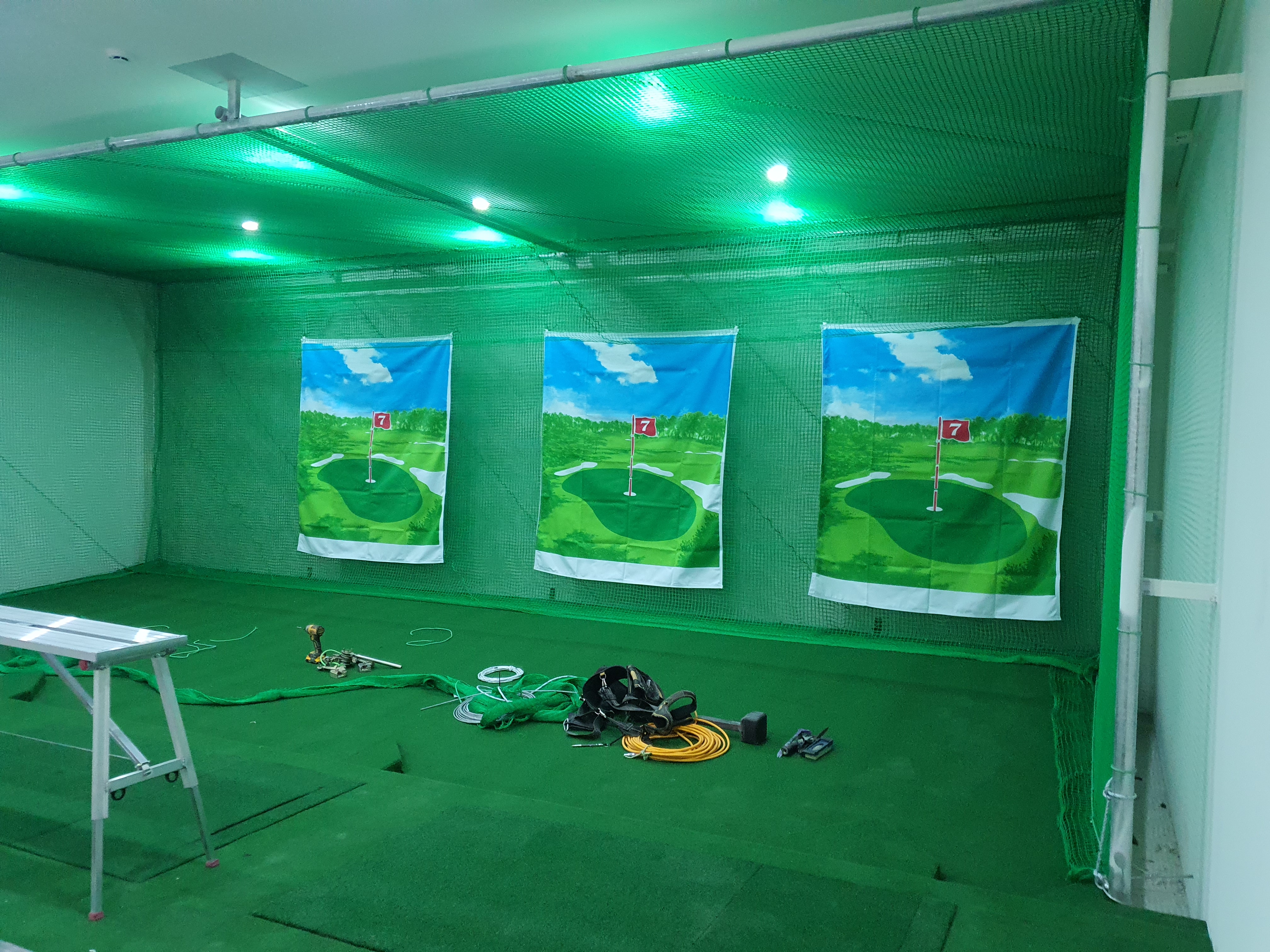 골프연습장 타석 3개는 그물 망 공사로 로 하고 룸 1개는 스크린골프장으로 공사합니다. 그물 망 공사. 타석매트, 아이언 매트, 카페트 시공, 그리고메모리폼 부착과 공막이 공사 스크린천 설치등을 일괄 공사로 진행했습니다.