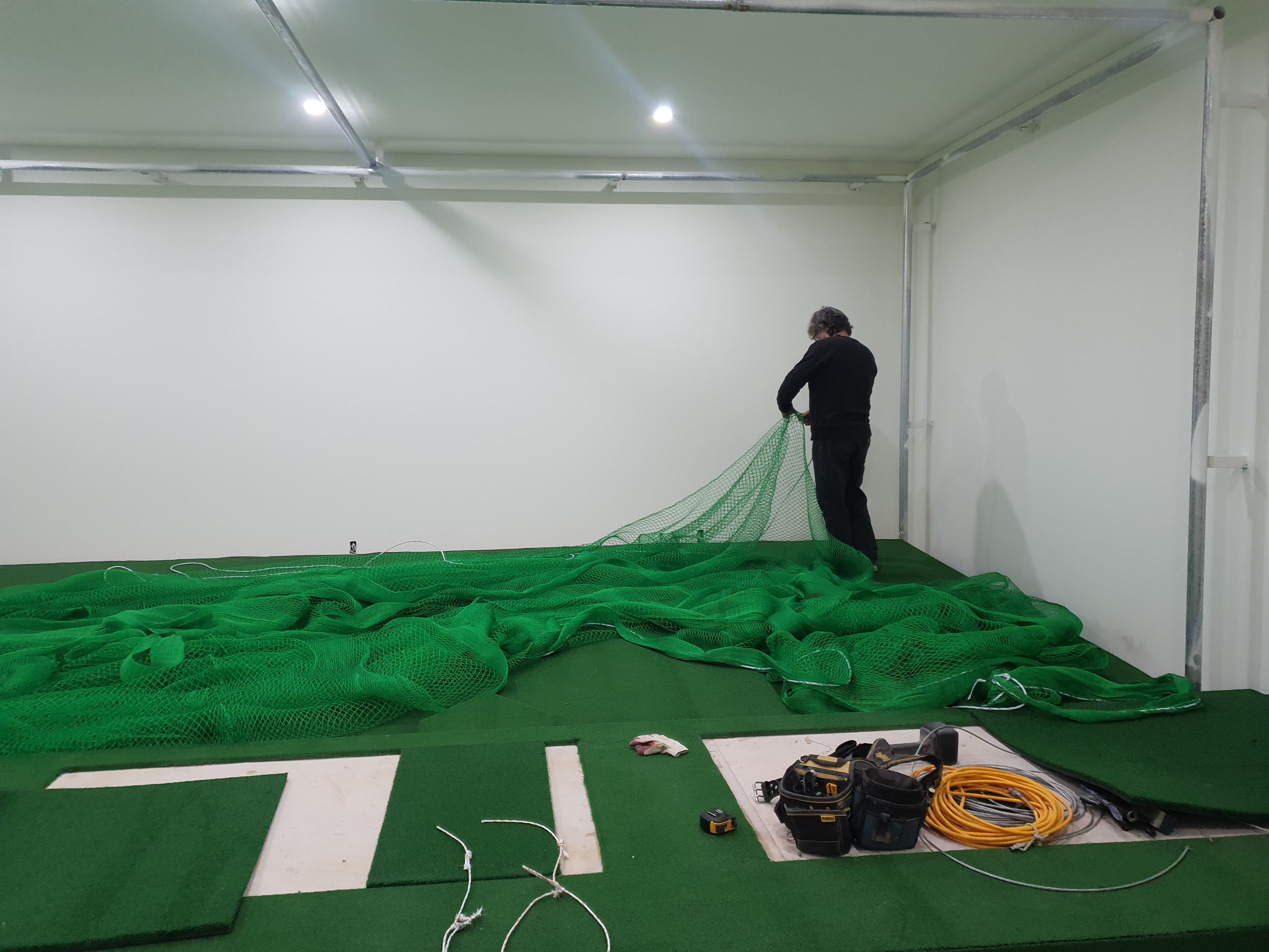 카페트, 타석 매트가 설치되고 그물망 공사를 시작하고 있습니다.