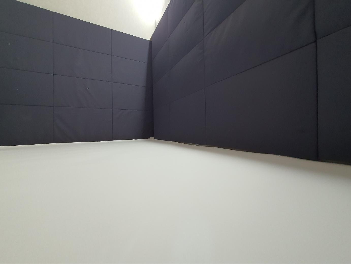 피팅샵 스튜디오 좌측과 우측 메모리폼 카펫트 스크린천 시공 사진입니다.