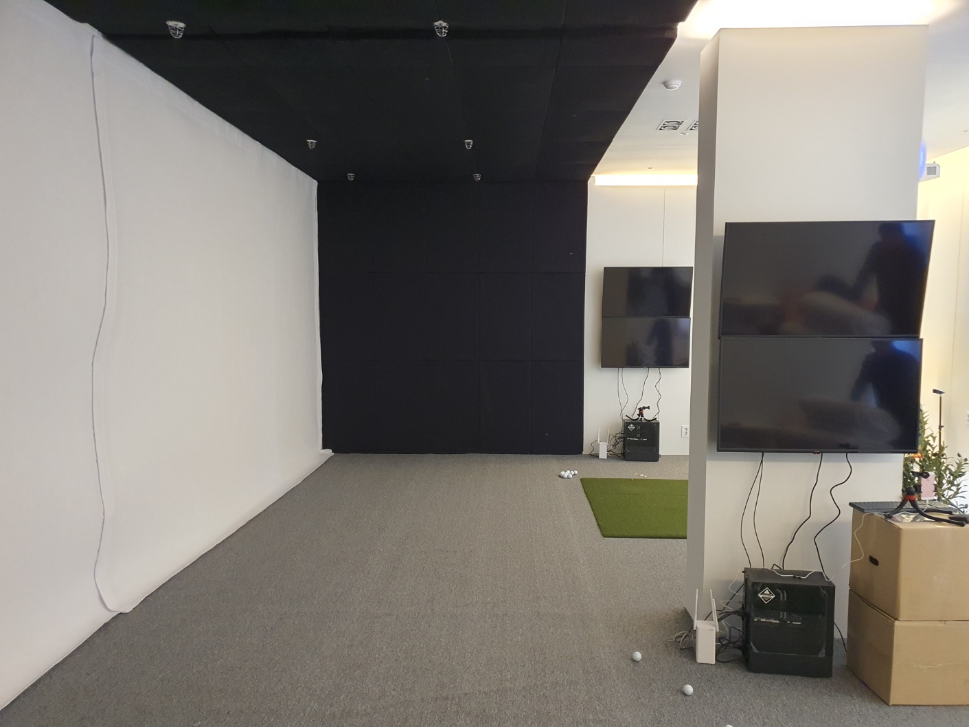 중간에는 커튼을 달아 좌우 분리를 한다고 하네요. 트랙맨 2대를 설치해 고객분들 자세를 분석 교정해 준다고 합니다.