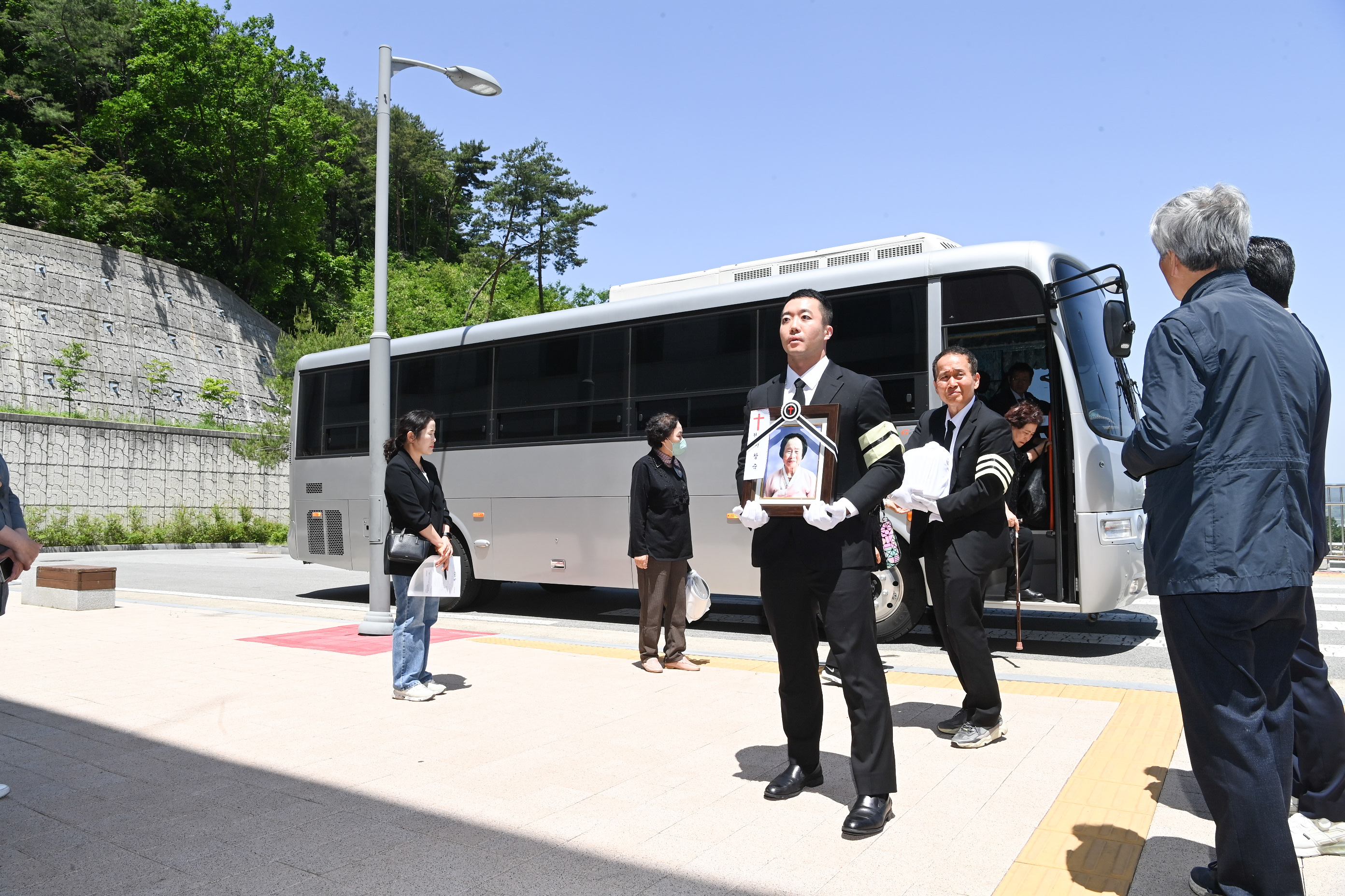 숭조당 유해 안치실로 향하는 유가족 (사진 ⓒ구미시)