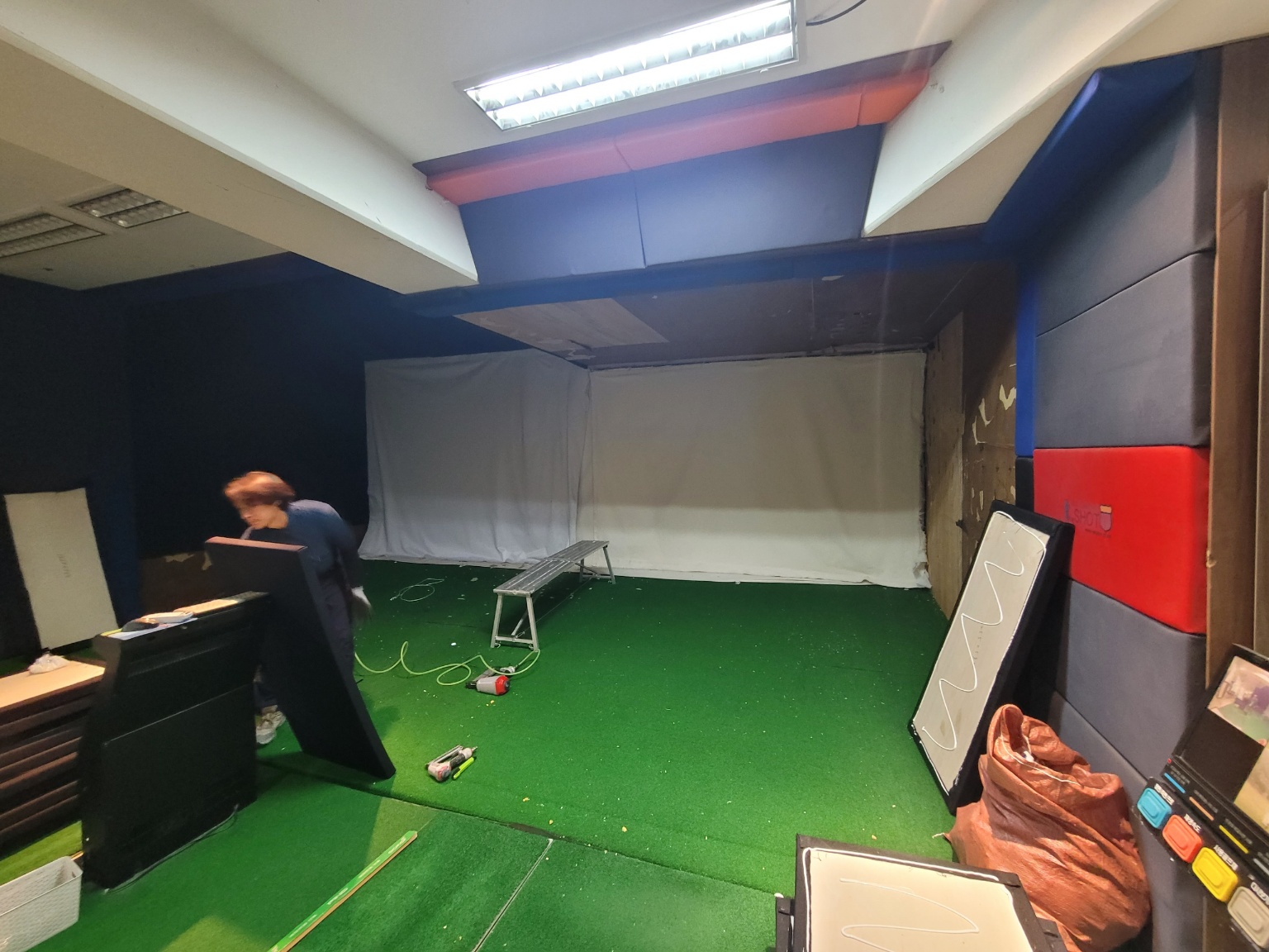 메모리폼 전면 교체 전 사진입니다. 오래되어 메모리폼이 축 늘어지고 터진것도 많고 낡아서 입주민들에게 쾌적한 스크린골프장을 제공하기 위해 유지 보수 관리차 전면 교체 시공하기로 했습니다. 4월 부터 상담을 하다가 6월 최종 결정이 나서 공사를 하게 되었습니다.