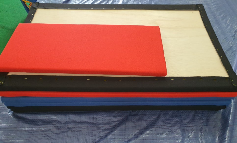 빨간색, 파란색 메모리폼 제작 의뢰가 왔네요. 검정색 메모리폼과 잘 만들어 배송합니다. 벽면 교체용으로 25T 메모리폼입니다. 니부 합판 두께를 더하면 30T 라고 보시면 됩니다. 시간 날 때 벽면 교체용 30T 제품도 스마트 스토어에 올려드릴게요