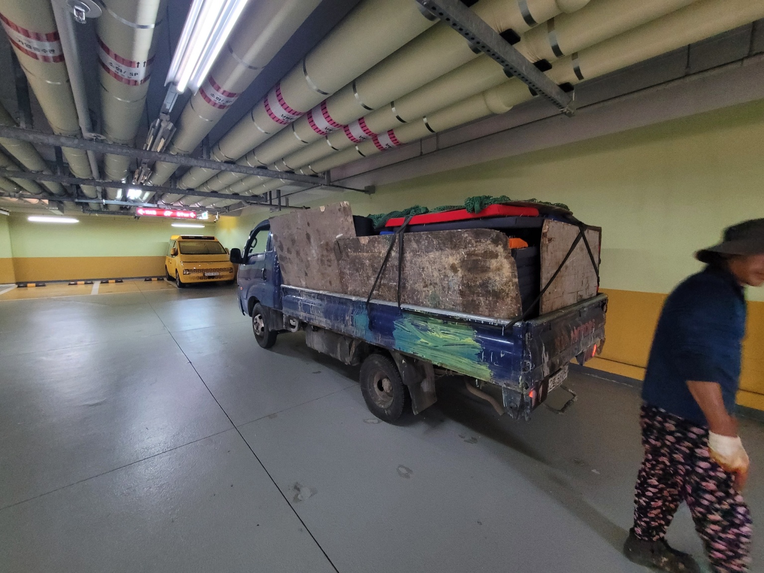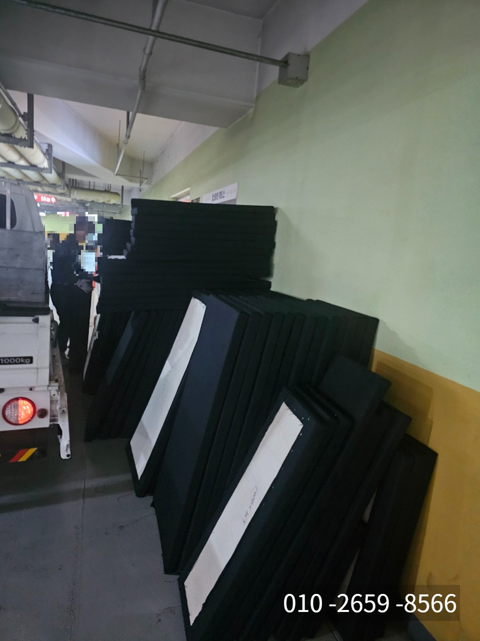 기존 낡은 메모리폼을 철거한 후 폐기물 처리하기 위해 화물차에 실었습니다.