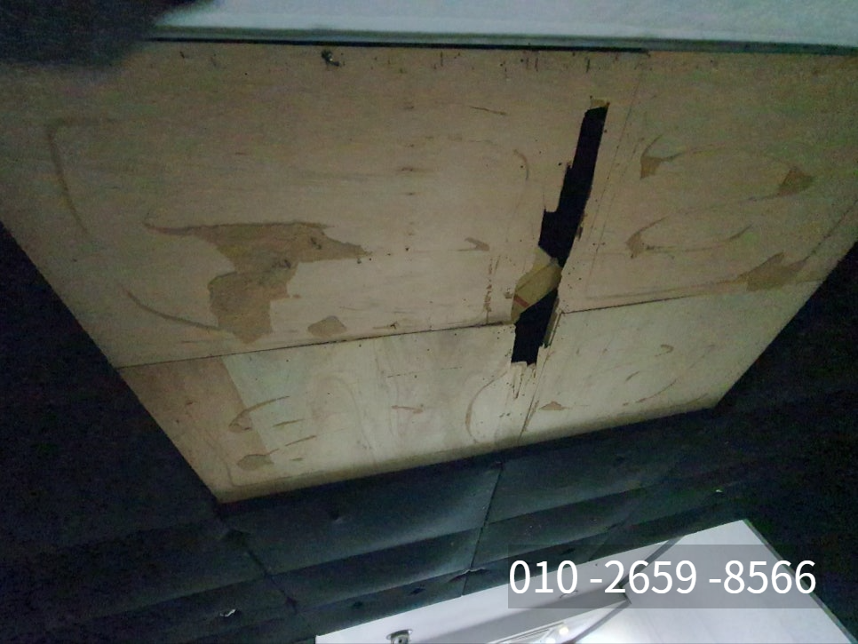천장 합판이 부서져 나가고 온통 나사못이 가득합니다. 엄청난 고민거리였을 겁니다.