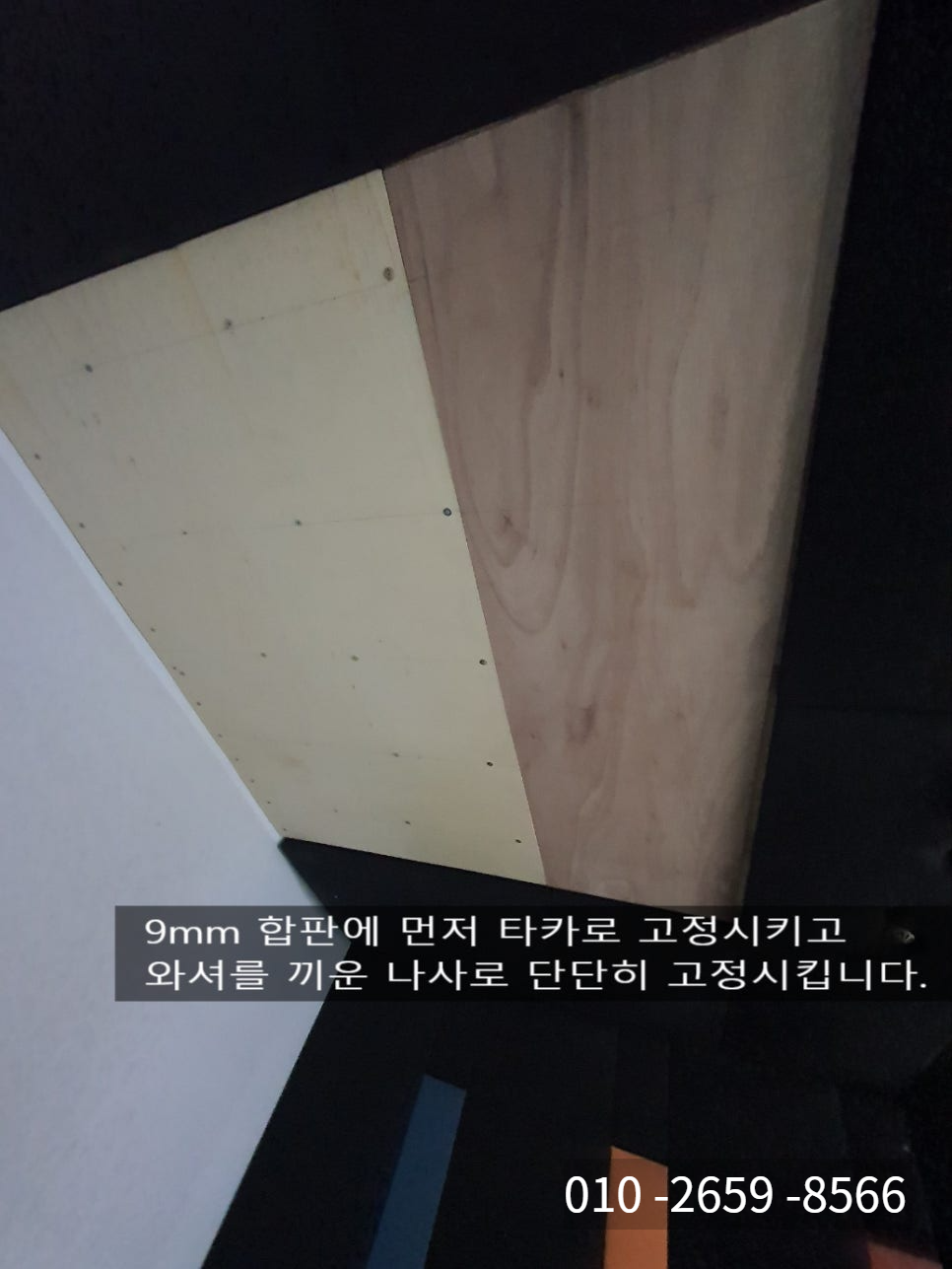 망가진 메모리폼을 철거하기 시작합니다. 골프공에 워낙 많이 맞아 합판이 너덜너들한 상태입니다. 이 상태에서는 새 메모리폼을 붙이기에 합판이 너덜너덜해서 붙일 공간이 없습니다. 9mm 합판을 보강 공사를 해서 붙이고 난 후 메모리폼을 시공합니다.