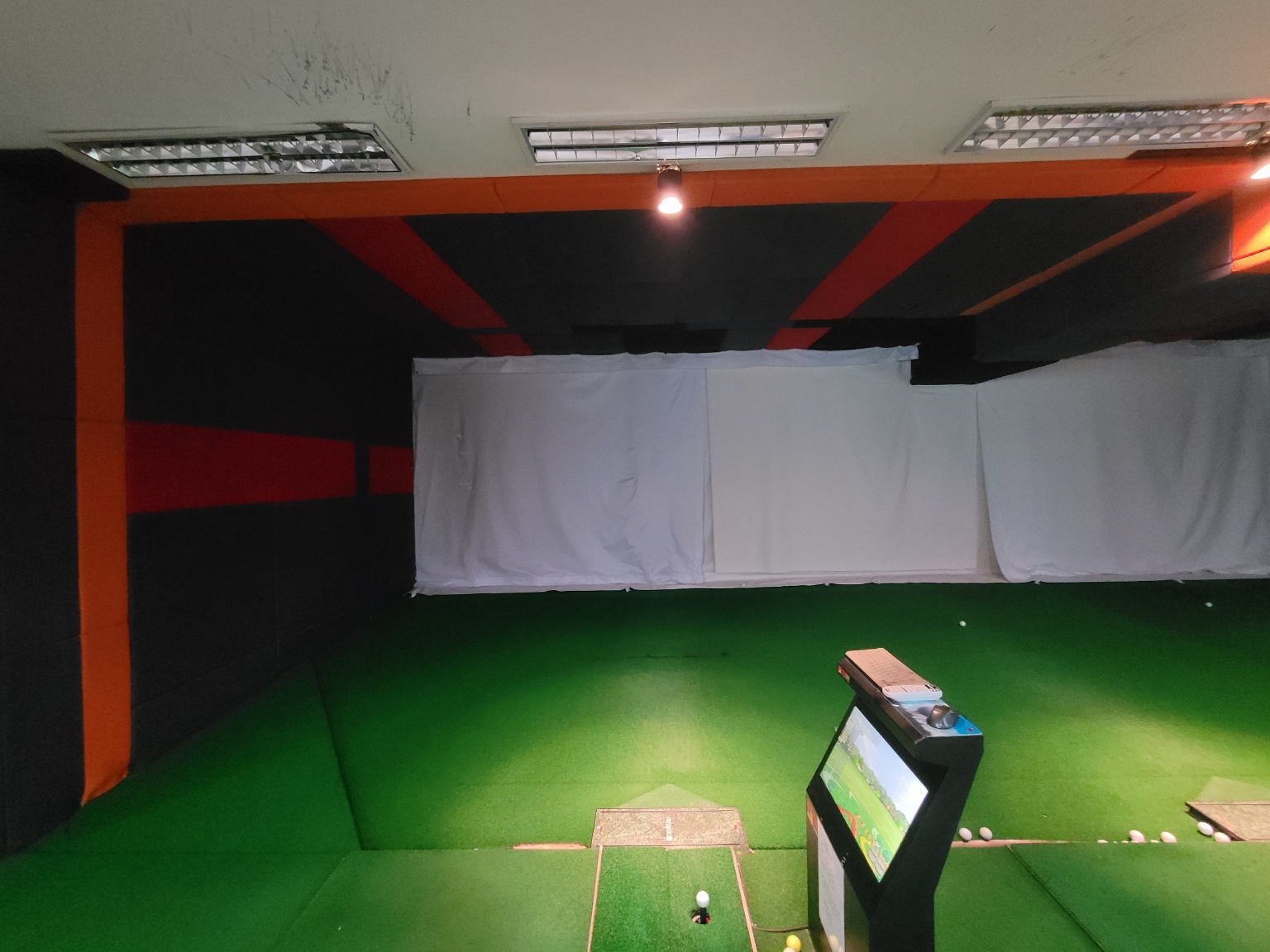 강변 스크린골프장은 골프존 NX 설치점인데 3번 룸 천장이 내려앉은 문제가 있어 방문했습니다. 천장 메모리폼이 파손되면서 보호판을 덧댄거 같은데 천장 공사가 부실한듯해서 천장이 조금씩 내려앉고 있습니다.
