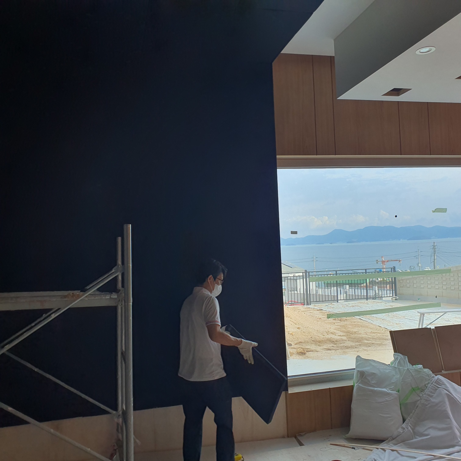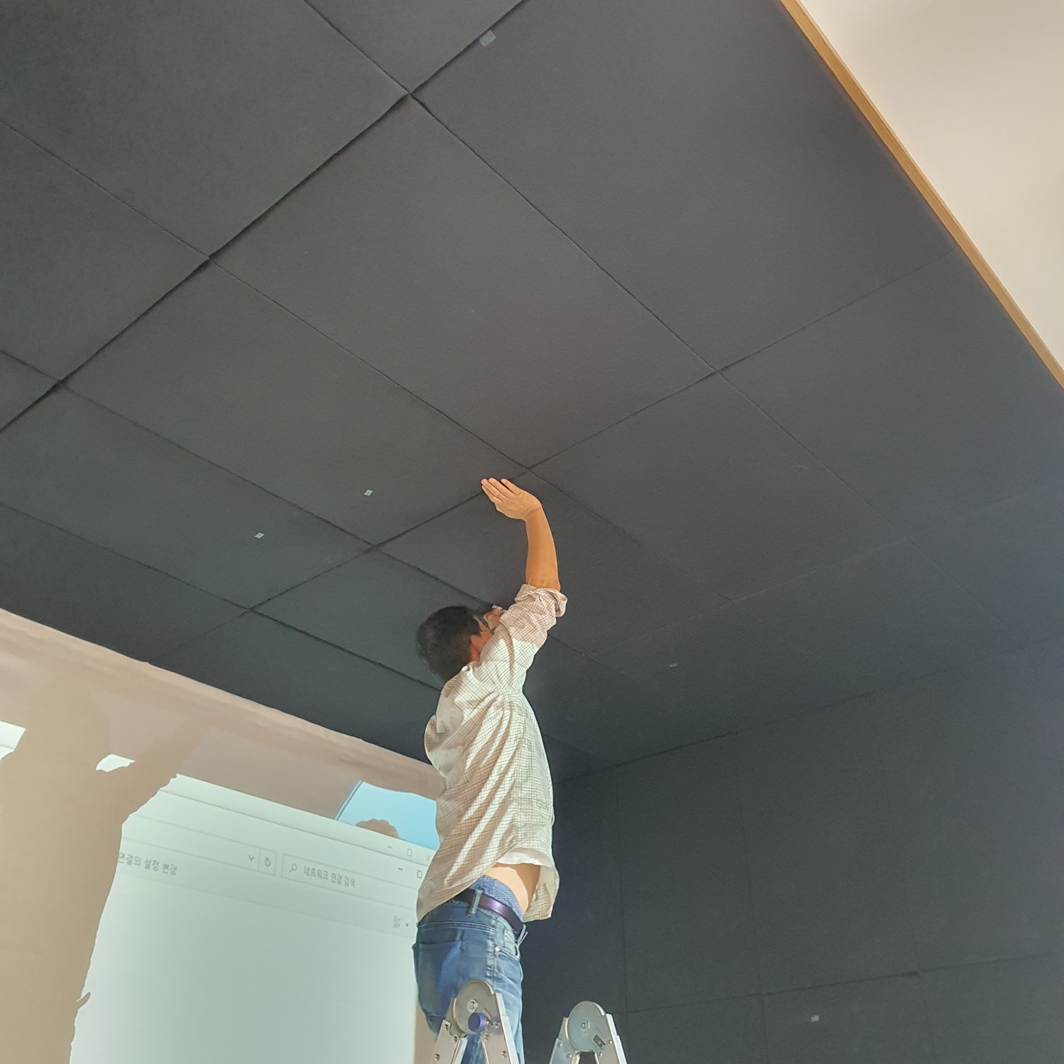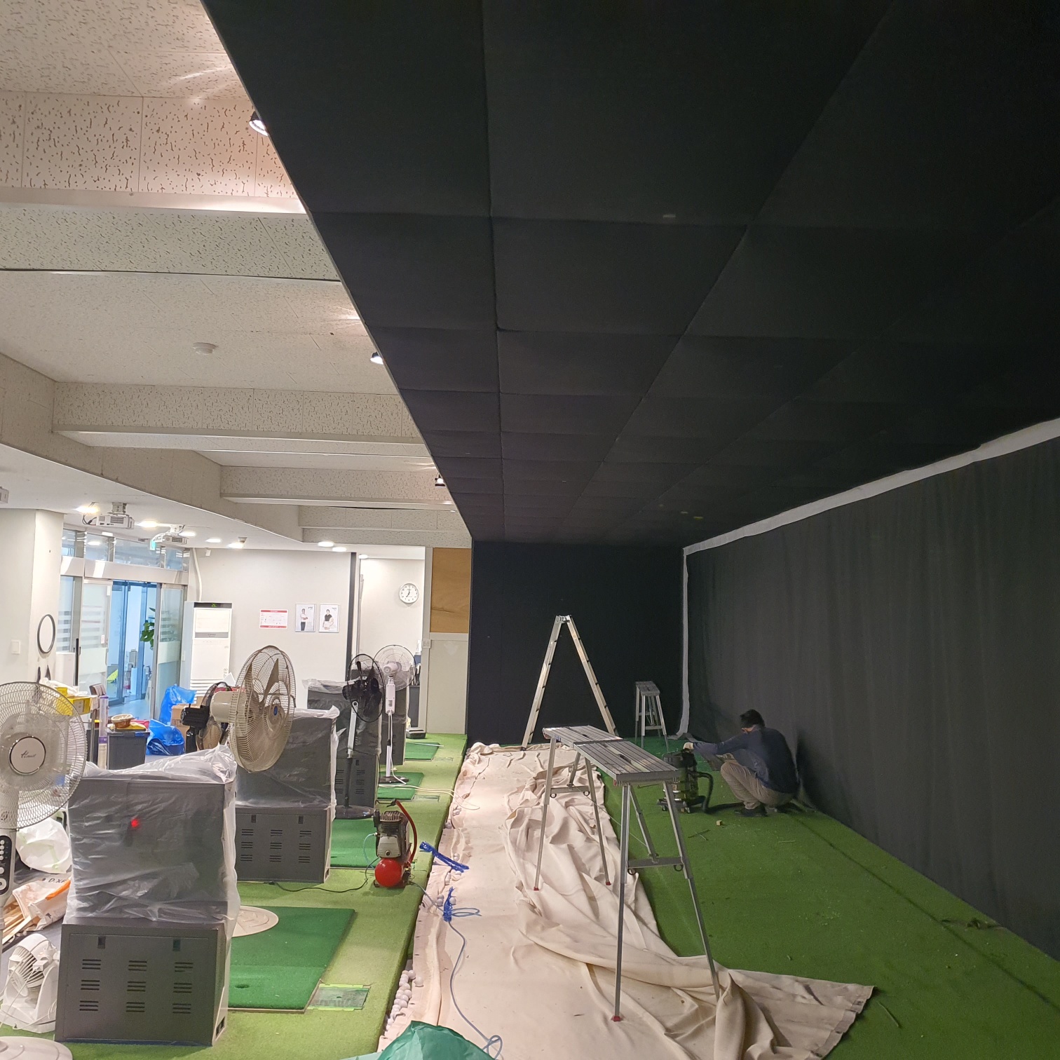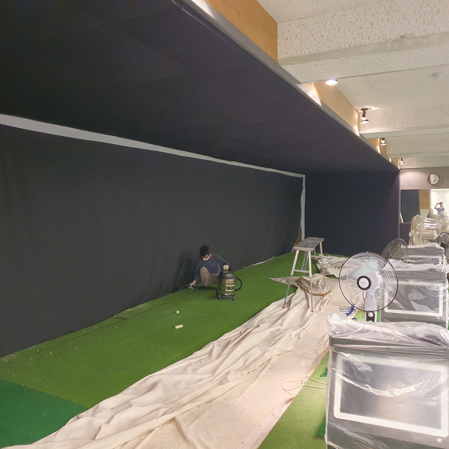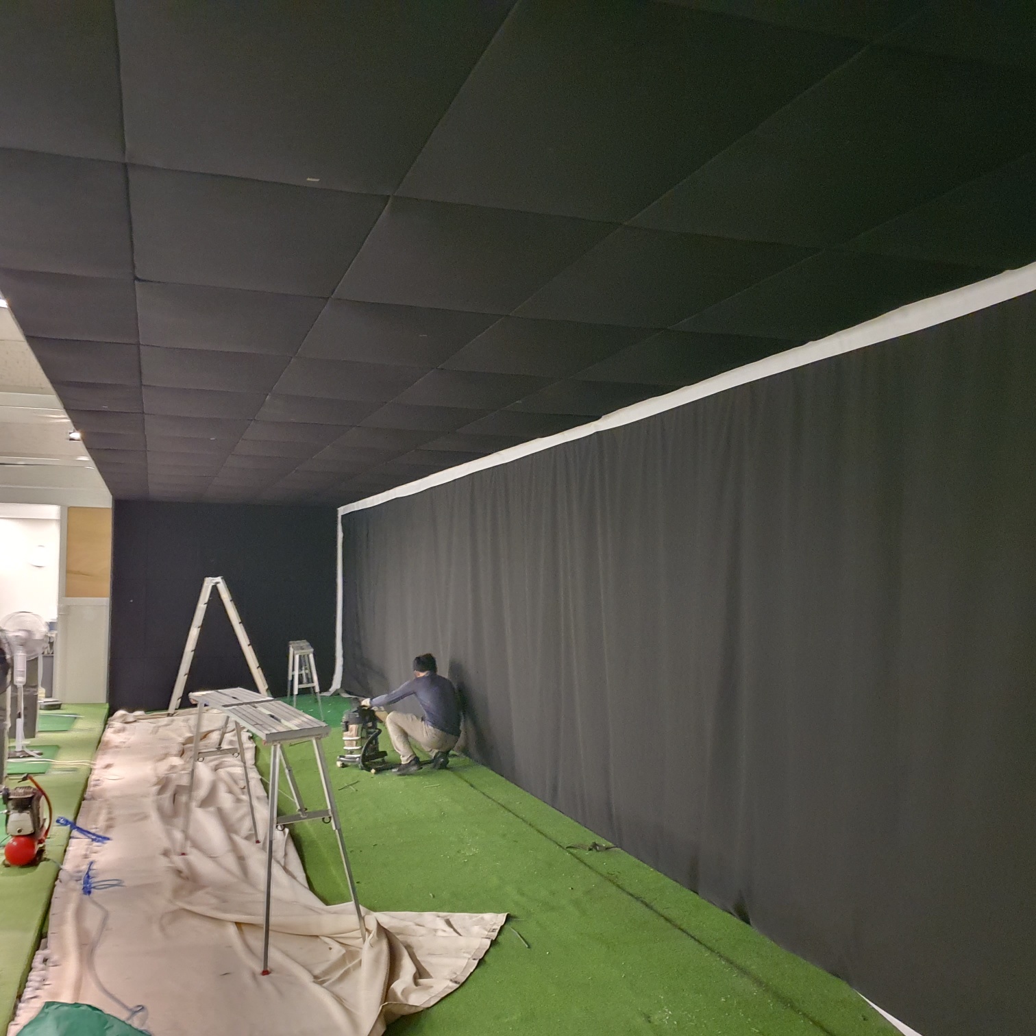충격방지 스크린골프 메모리폼 부착 시공을 마친 후 스크린 천 시공을 진행합니다. 하루만에 메모맆ㅁ 부착, 스크린천 시공을 마칩니다.