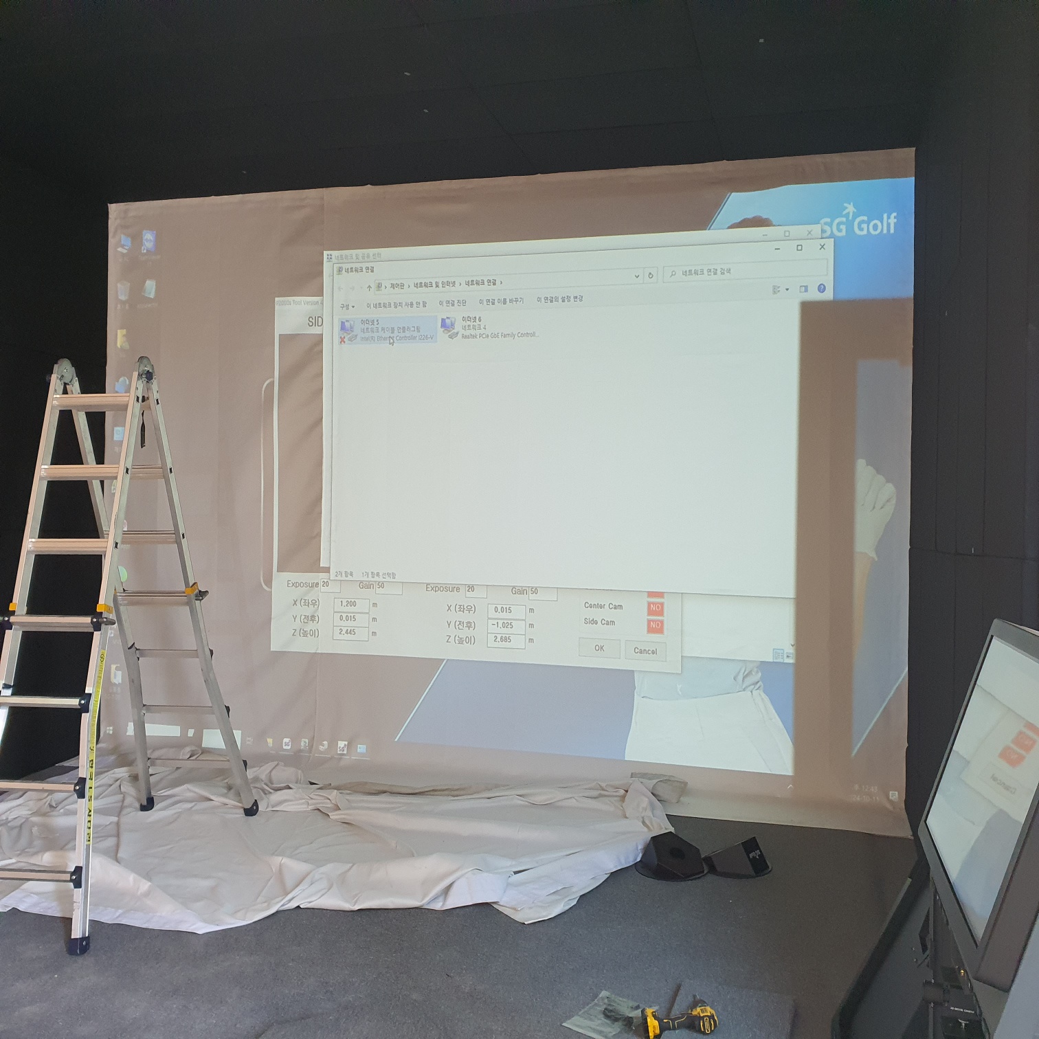 층고도 매우 높고 폭도 매우 넓은 골프룸입니다. 그래서 스크린천도 이어붙이고 마무리까지 애를 많이 먹은 현장입니다.