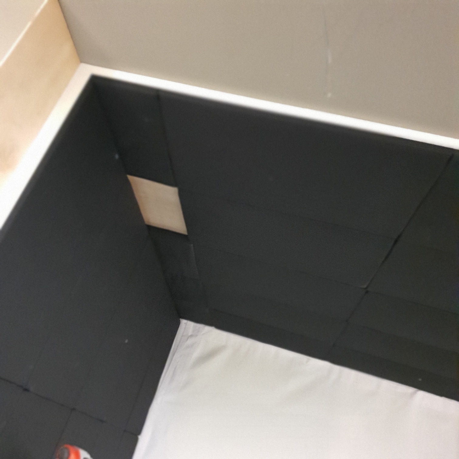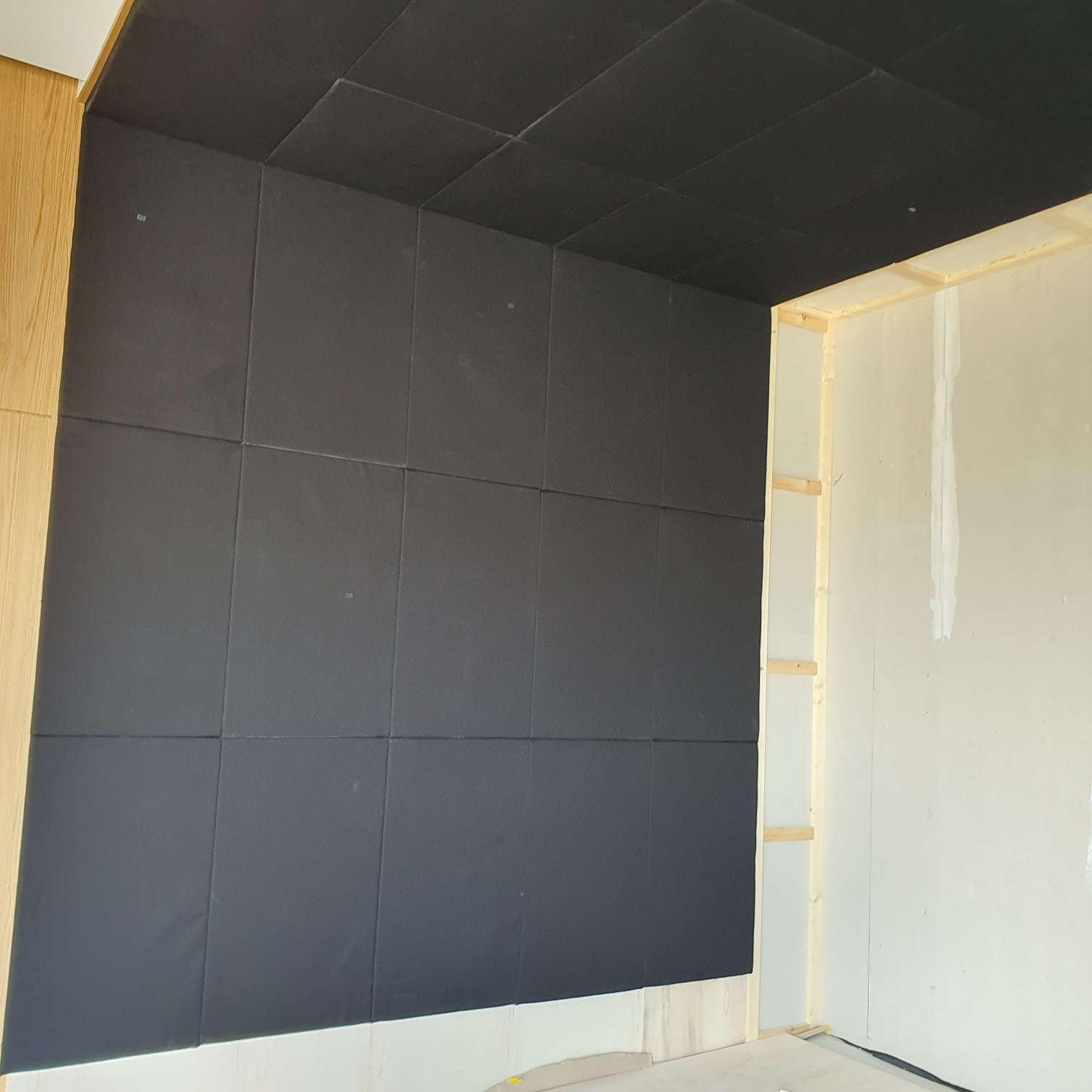 메모리폼 시공과 암막천이 시공된 모습입니다, 암막천은 빛 차단 효과가 있어 스크린 화면 화질에도 좋습니다.