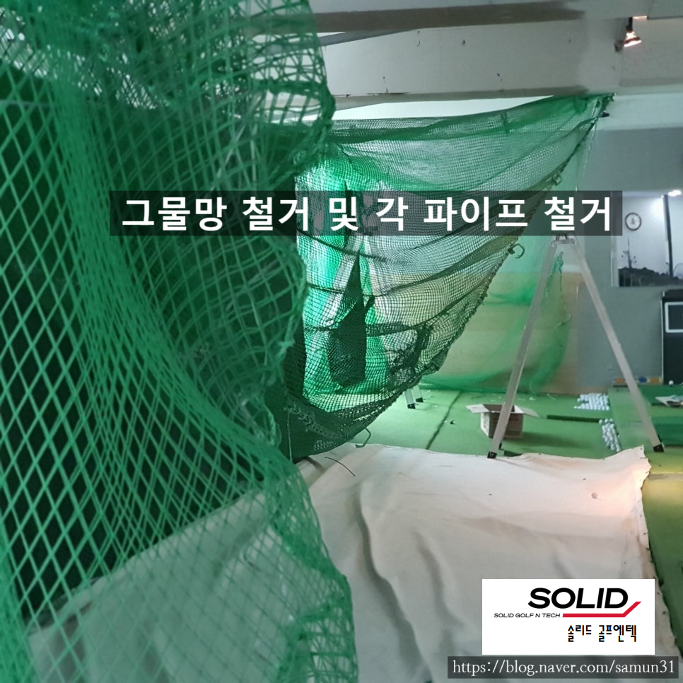 공사 시작은 1차 그물망 및 철제 각 파이프 철거 2차 목수 팀의 목공사 3차 스크린골프 메모리폼 시공 및 암막 천 타서 천 시공으로 마무리되었습니다.