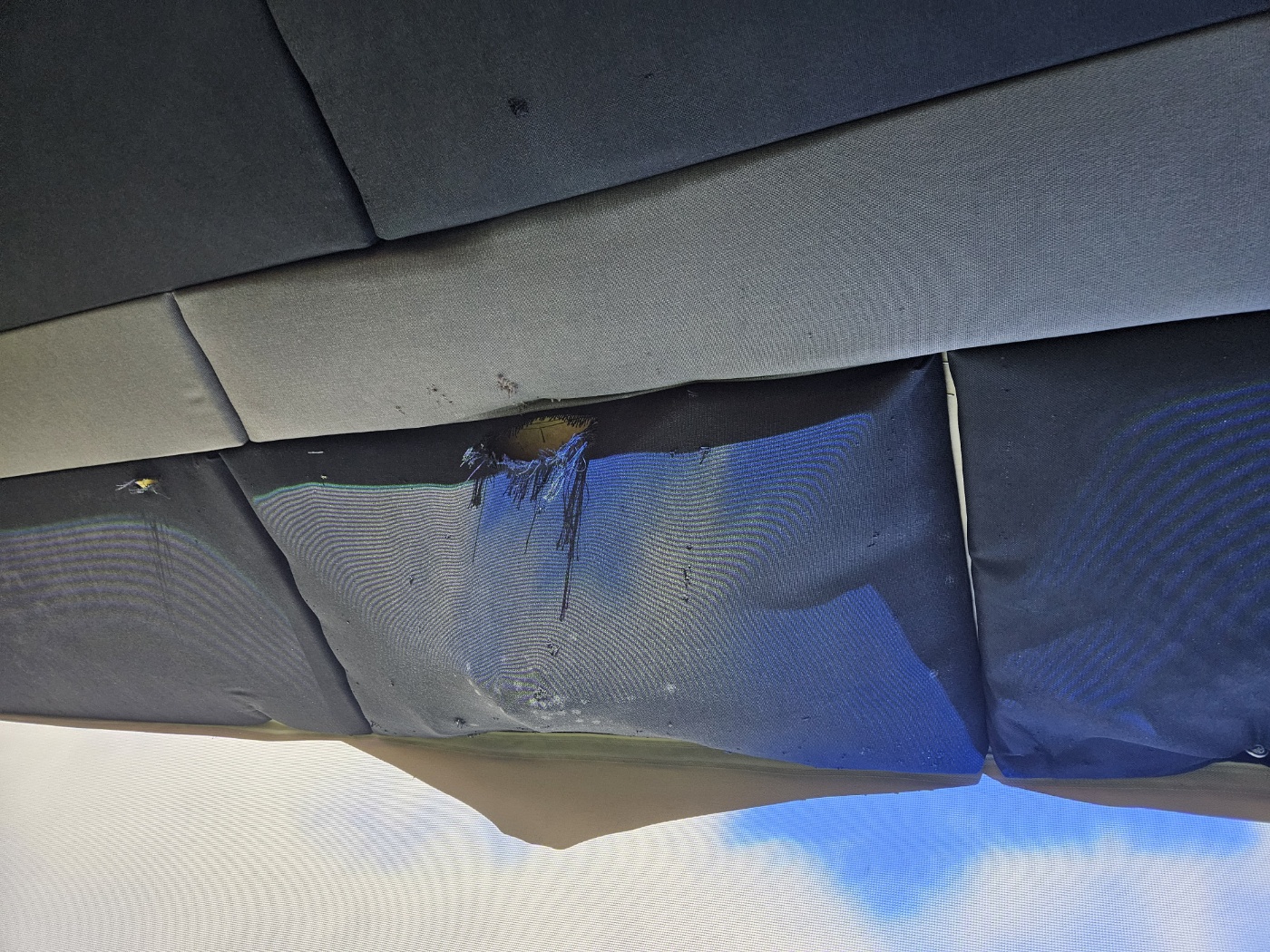 천장 메모리폼이 망가져 축 처진 상태로 화면 상단이 울퉁 불퉁하게 보입니다.