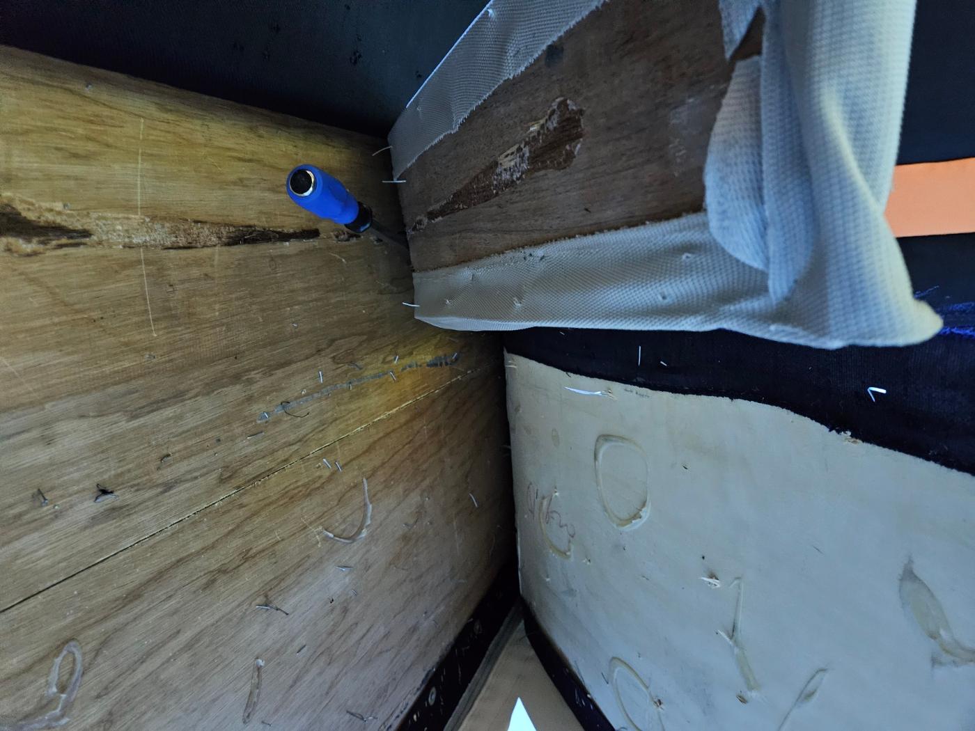 터지고 망가진 폼을 철거하고 새로 제작해간 메모리폼을 부착중인 사진입니다. 오래 된 골프장인데 천장에 합판을 덧 대어 보강한 흔적도 있네요.