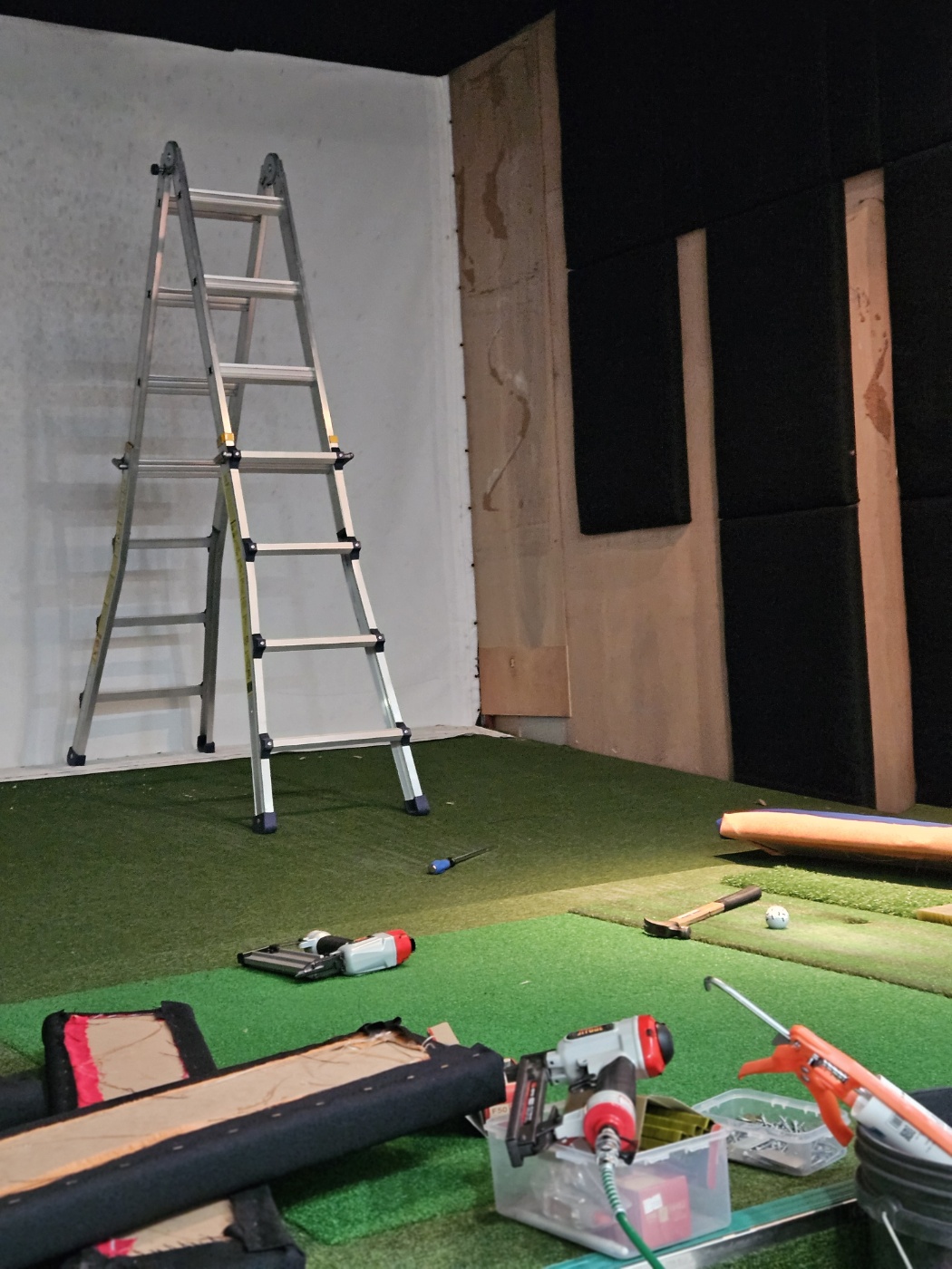레슨을 전문으로 하시는 프로님이 리모델링을 진행중인 타석 12개 골프연습장을 소개해주셔서 무소음 천으로 교체하고 와이어 및 중간 기둥이 있어 공이 튀는 문제등을 해결해드렸습니다.