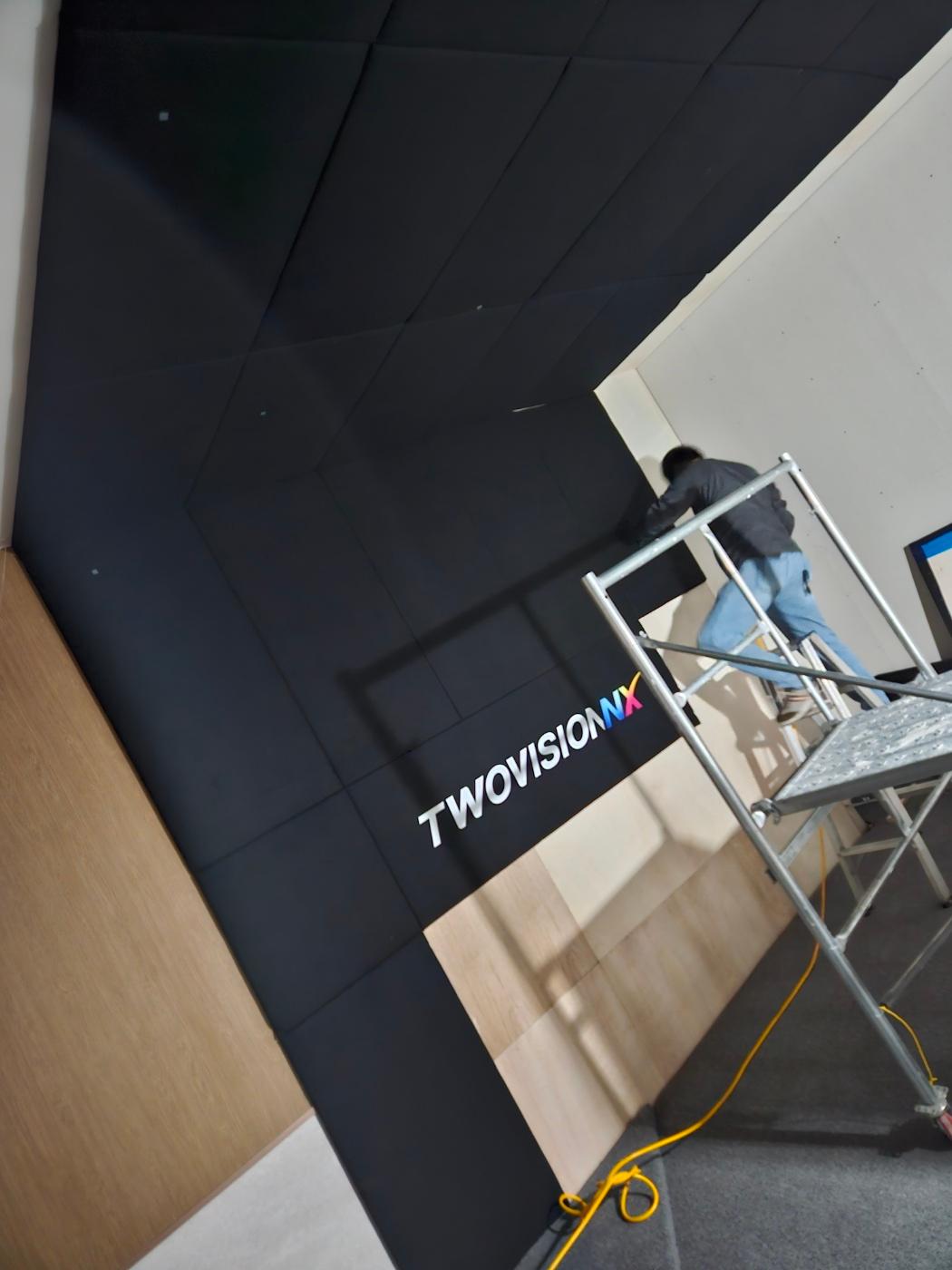 스크린골프장 메모리폼 부착 시공이 한창입니다.