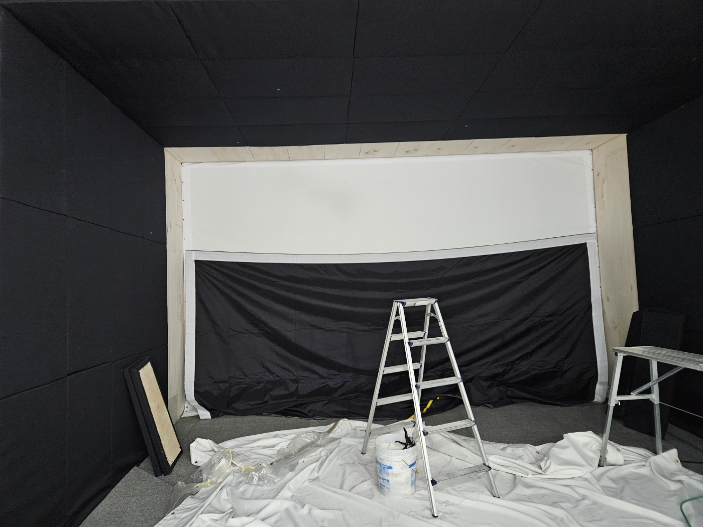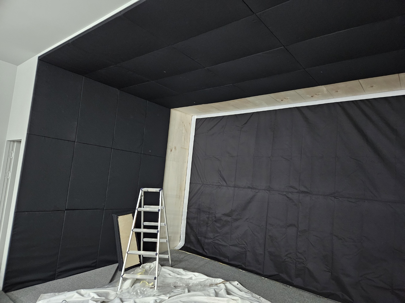 경기도 화성시 기업체 스크린골프장 시공한 경우인데 뒷천을 부착하고 메모리폼 마지막 칸 시공전 한컷 찍은겁니다.