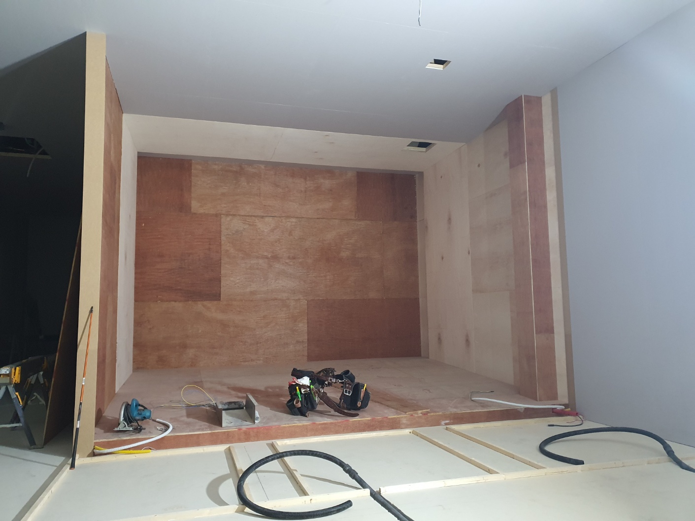 종종 뒤쪽벽을 석고로 마감한 현장들이 많은데 나중 골프공이 뒤로 넘어가면서 석고를 부수는 일이 흔히 발생합니다. 처음 부터 합판으로 막으면 좋습니다.