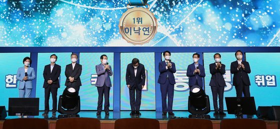 더불어민주당 대선주자들의 '국민면접'에서 이낙연 전 대표가 1위를 차지했다. 여론조사에서 줄곧 여권 1위를 달리고 있는 이재명 경기도지사는 3위권 밖으로 밀려났다. 3위권 밖은 순위를 발표하지 않았다.