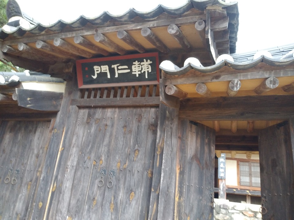 월암서원의 정문인 솟을 삼문으로 보인문 현판이 보인다.