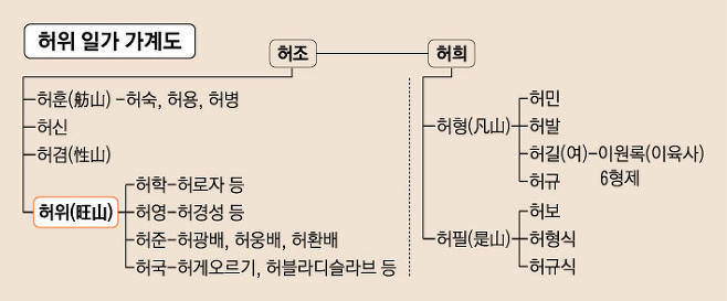 왕산 허위, 범산 허형 가계도(이육사의 6형제의 외가집이 바로 경북 구미 임은동이다)