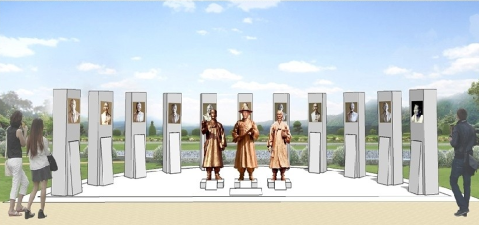 구미 확장단지 10호 공원에 설치되기로 한 왕산 허위 가문의 14명의 독립운동가 동상이 갈곳을 잃은 상태다.(사진/ⓒ수자원공사)
